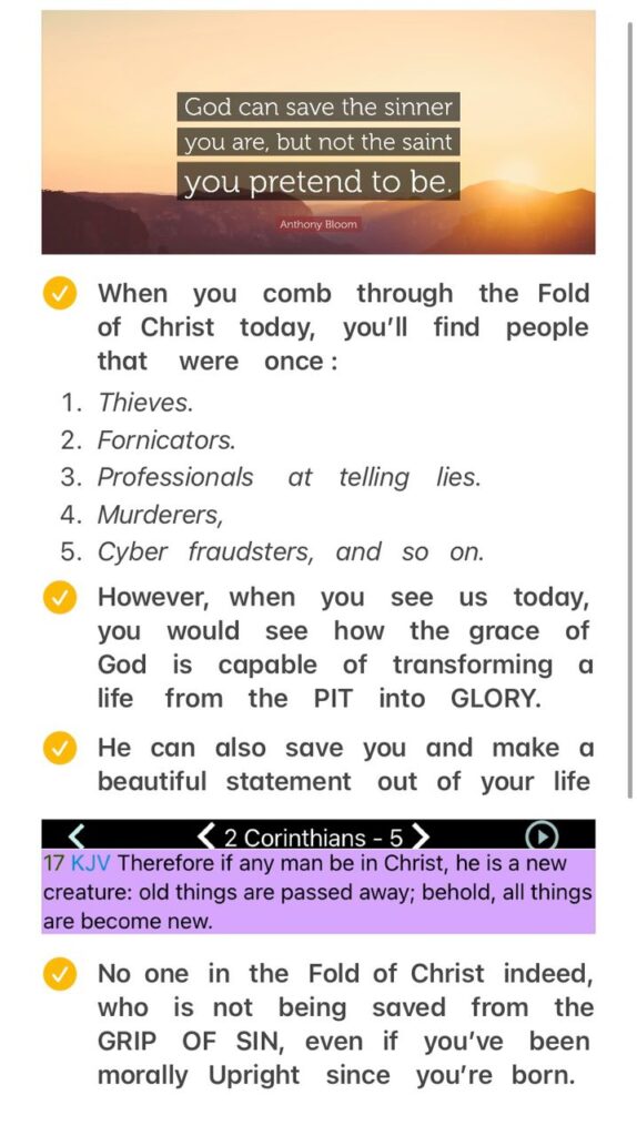 I don’t really know how FAR you have gone in the pool of sin and sinful lifestyle, that the GRIP OF GRACE can’t bring you back.