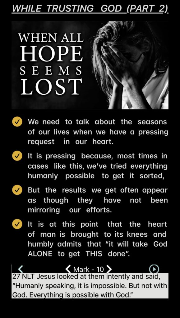 WHILE TRUSTING GOD— PART 2