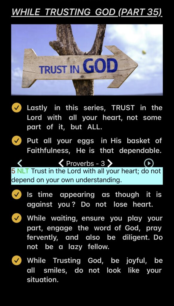 WHILE TRUSTING GOD — PART 35